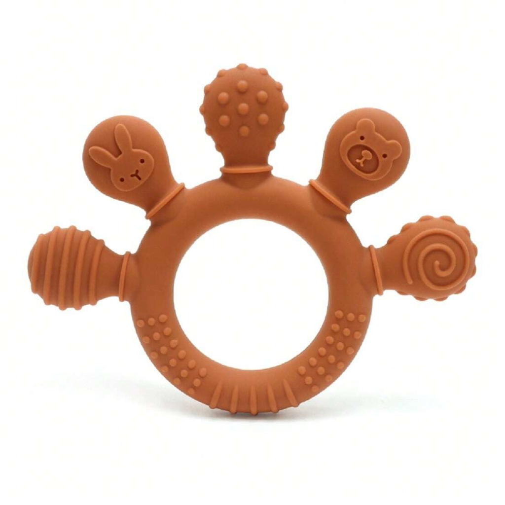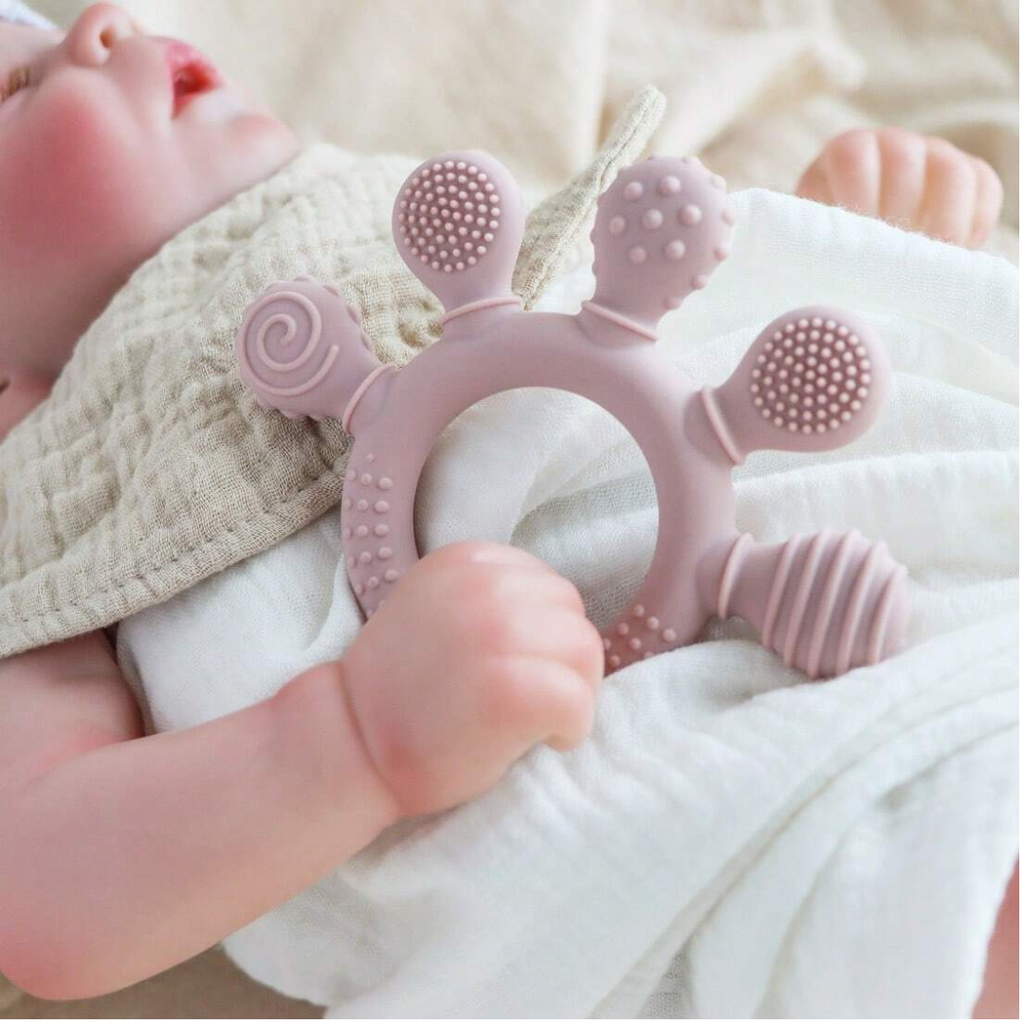 O Brinquedo de Dentição Sensorial em Silicone foi desenvolvido especialmente para aliviar o desconforto da dentição, enquanto estimula os sentidos e a coordenação motora do bebê.