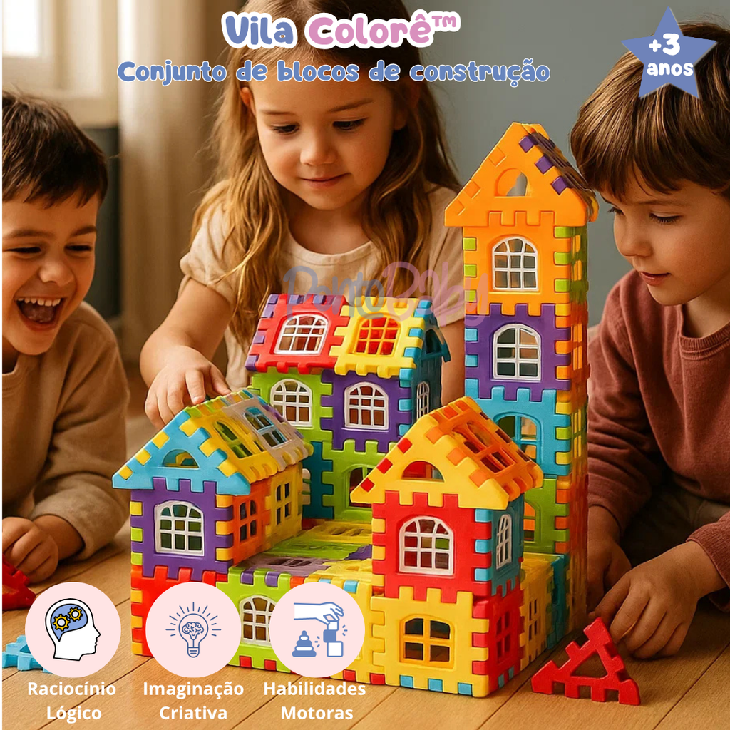 Com o Vila Colorê™, cada peça se transforma em casinhas, torres e castelos cheios de alegria — um brinquedo educativo que estimula a criatividade, a coordenação motora e o raciocínio lógico, tudo enquanto a criança se diverte por horas!